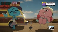 Ricardo admite que se encontra tão desidratado que nem pode chorar. Darwin esclarece-lhes que está a escurecer e Gumball sobressalta-se já que julga que a noite é a altura ideal para que as criaturas os consumam vivos sem que ninguém escute os seus gritos. Nesse momento, um homem velho, horrendo surge na janela e pergunta-lhes se eles necessitam de ajuda. Os miúdos estão apavorados pois julgam que se trata do homem da história de Nicole. Contudo, Darwin observa que ele ainda possui um dente, o que não corresponde à personagem representada na história da mãe. Nicole responde ao homem que eles não necessitam de auxílio pois possuem à sua disposição um telemóvel. O homem argumenta que não há rede no deserto e Nicole aborrece-se.