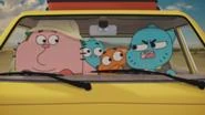 Eles todos correm em direções opostas. Ricardo cai de uma ravina em cima de uma poça de lama. Nicole aparece e ao vê-lo coberto de lama, julga tratar-se um monstro, pelo que reage, pontepeando-o. Gumball e Darwin chocam um com o outro. Anais está assustada e quando vê que Ricardo está atrás dela, ataca-o, julgando tratar-se de um monstro. Quando descobre que é o pai, este agarra-a e coloca-a aos ombros para fugirem. No entanto, um galho interpôe-se e derruba Anais dos ombros de Ricardo. Nicole, ao aperceber-se de que há uma criatura atrás dela, decide atacá-la mas a dita criatura revela-se Gumball e Darwin. A dado momento, a família reúne-se e e decide fugir quando compreende que o psicopata se aproxima.